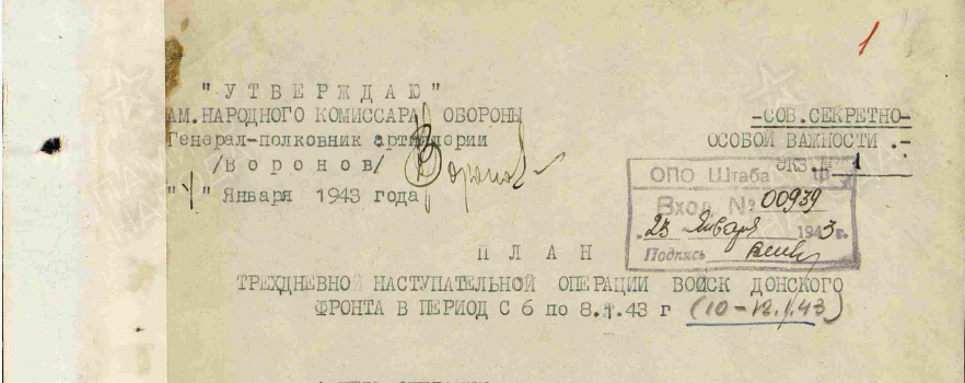 Операция Кольцо всегда была в тени своих старших братьев - Урана и Сатурна. Ну что там может быть интересного? Никакой интриги и загадки. Но в итоге такое отношение привело к удивительному результату. Если планы Уран и Сатурн до сих засекречены (возможно утеряны или в худшем случае уничтожены) то Кольцо нам доступно безо всяких "как бы". Именно из-за того, что эта операция закончилась полной победой. Действительно, у нас есть оригинальный план с подписью Рокоссовского и Воронова и это огромная удача на фоне остальных "градообразующих документов" Сталинградской Битвы. Поэтому, кстати, приходится относится с изрядной долей скепсиса к тем людям, которые в своих работах ссылаются на "стратегический план Уран". Ну нет в наличии такого плана! Нет и всё. В советское время считалось, что наступательные операции Сталинградской Битвы - это последовательные части единого плана, разработанного еще в сентябре 1942 года Жуковым и Василевским (в редакции до 1956 года - Сталиным). Однако на сам