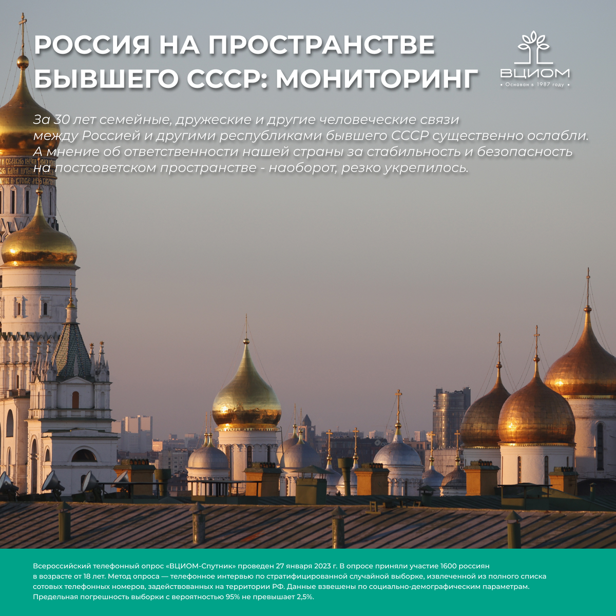За минувшие 30 лет россияне стали меньше знать о жизни бывших советских республик, рвутся родственные (17%, -11 п.п. vs. 28% в 1993 г.) и дружеские (9%, -7 п.п. vs. 16% в 1993 г.), связи между Россией и странами бывшего СССР. Если в 1993 году четверо из десяти респондентов отмечали, что их жизнь связана с другими республиками бывшего Союза (42%), то сегодня таковых в два раза меньше (24%).