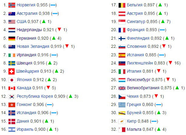 В последнее время все чаще можно слышать умные разговоры на тему того, что, дескать, индекс человеческого развития (ИЧР) в том или ином государстве низок, или наоборот, высок. Предлагаем разобраться с тем, что же это такое, ведь речь идет, безусловно, о научных фактах! Все началось в 1990 году. Именно тогда группа экономистов, возглавляемая пакистанцем Махбубом-уль-Хаком, разработала данный индекс. Индекс человеческого развития используется для сравнения основных показателей уровня жизни, долголетия, образованности и грамотности различных стран. То есть это, своего рода коэффициент полезного действия человеческого общемирового развития. Перед тем, как определить ИЧР, исследователи учитывают следующие факторы: В ООН ежегодно публикуются отчеты индекса человеческого развития. Следует лишь добавить, что условно ИЧР классифицируется на 4 группы: Как это выглядит, вы можете посмотреть на примере отчета за 2013 год. В списке указаны первые 32 страны с очень высоким индексом развития человече