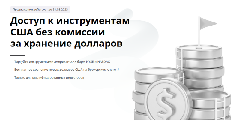 До 31 мая 2023 года открыв счет «Иностранные биржи» в «Финаме», можно совершать торговые операции со всеми популярными инструментами на американских биржах NYSE и NASDAQ — акциями, АДР, ETF и опционами. Предложение доступно только квалифицированным инвесторам. Комиссия за хранение долларов США отсутствует. Используйте возможности рынка США Акции, АДР, ETF, опционы
