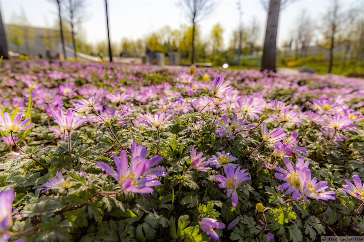 В парке "Зарядье" сейчас всё цветёт и пахнет, нежная зелень распустилась на берёзах, а под ноги вовсю лезут разноцветы: только бы не наступить! Особенно красиво с внешней стороны — там, где набережная. На нескольких сотках вырос урожай мускари — голубых вестников весны. Цветы с названием мускари, они же мышиный гиацинт, в России также называют "гадючий лук". В Великобритании это виноградный гиацинт, а во Франции — земляная сирень. И, хотя растение ядовито, мускари известны своими лечебными свойствами и применяются в народной медицине и косметологии. Мускари появился в Западной Европе в XVII столетии. А прижились луковицы на территории Нидерландов, куда их прибило к берегу в результате шторма на море. Корабль, на котором везли луковицы представителей семейства Гиацинтовых, потерпел крушение. Так европейцы узнали об удивительных душистых цветах, которые легко вырастить из маленькой луковицы. Существует много разных видов мускари, в том числе армянский, широколистный, хохлатый, гроздевидн