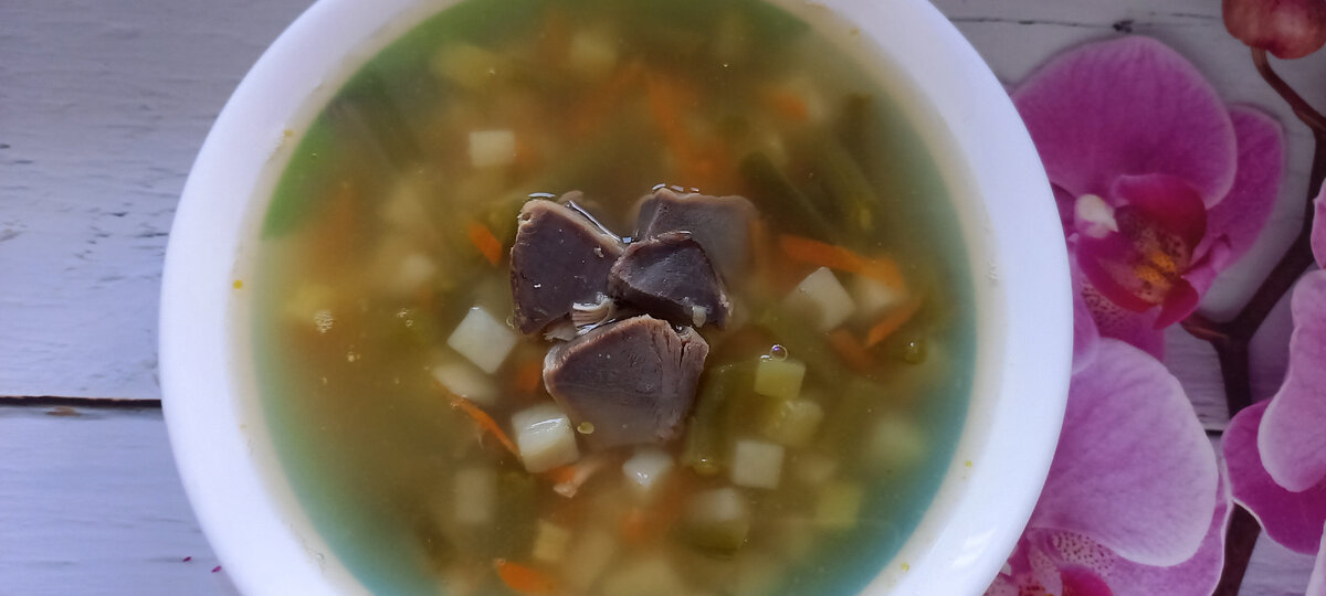 Наваристый, вкусный суп из голени и желудков индейки. Супы из индейки варю часто. Беру или грудку, или голени. В этот раз добавила желудки индейки. Получился обалденный супец!👍👍👍 Сначала я сварила бульон(первый всегда сливаю). Для аромата и вкуса положила веточки укропа, луковицу, несколько долек чеснока, душистый перец горошком Пока варилось мясо(1ч.-1ч.30мин.), порезала картофель и кабачок кубиками Готовое мясо я вынула из кастрюли и положила в отдельную емкость В кипящий бульон закинула картофель, натертую морковь И зеленую стручковую фасоль Добавила по вкусу соль, сахар, черный молотый перец, сушеный чеснок и варила еще минут 30. В этот суп можно добавить и цветную капусту, и брокколи, и болгарский перец, и свежемороженные горошек и кукурузу. Это полет вашей фантазии. Получился очень вкусный и полезный суп. Пассеровку я не делала(и вообще для супов делаю ее крайне редко, только для грибного супа).Мяса было много, поэтому он и так получился вкусным😋👍 Берите рецепт на заметку