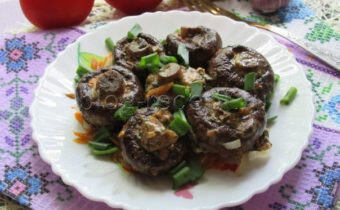 Такие запеченные шампиньоны можно готовить хоть на праздничный стол, как закуску, хоть на каждый день, как горячее блюдо с овощами на гарнир. Причем овощи можно выбирать по сезону или по предпочтениям. Я чаще всего готовлю с морковью и луком. Шампиньоны, запеченные в духовке – отменная закуска, которую можно подавать на стол, как в горячем, так и в холодном виде. Приготовление этого замечательного блюда особых усилий и умений не требует, и много времени тоже не занимает. Грибы нужно замариновать в соевом соусе и сметане, а затем запечь целиком. Я буду запекать грибочки без начинки, но с луком и морковью, которые исполнят роль гарнира. Что вам потребуется Количество: 2 порции Время приготовления: 1 час 20 мин (не считая времени на маринование). Как запечь в духовке шампиньоны целиком в соевом соусе Запеченные шампиньоны к столу подаем вместе с овощами. Можно дополнительно подать картошку, хорошо подходит молодой картофель отваренный целиком, или другие овощи, приготовленными любым спосо