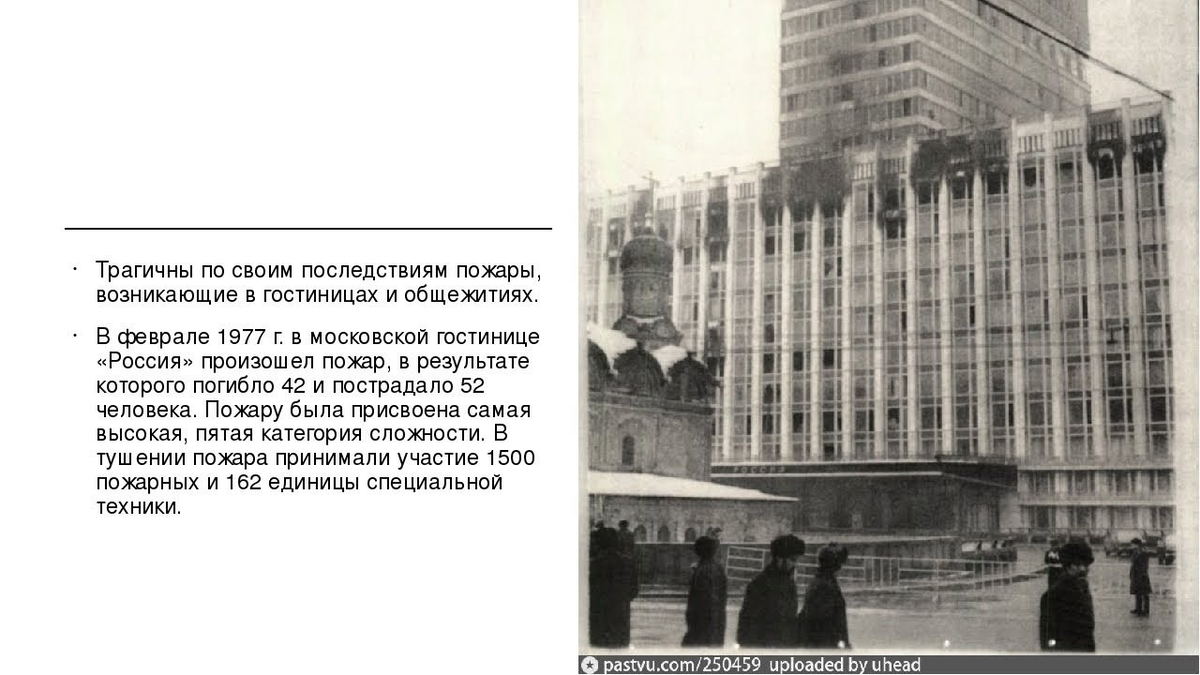 Не так чтобы всем актерам удались свои роли (например, на удивление неубедительно выглядит в роли "отрицательного кэгебешника" хороший актер Павел Трубинер, привыкший, видимо, играть положительных героев). Не так чтобы режиссерам удались все сцены: некоторые выглядят весьма схематичными, затянуными и не слишком правдоподобными, да и слишком долго действие подводит к кульминационному событию - пожару в главной гостинице СССР и самой большой гостинице Европы.