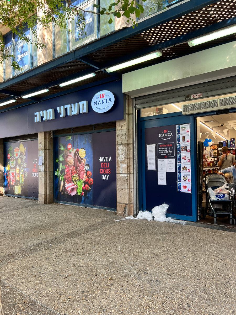 Магазин Мания - отличное местечко для граждан, не соблюдающих кашрут. Мы там частые гости. Покажу, что сегодня я приобрела интересненького и вкусного. Так выглядит вход. Магазин располагается на улице Штапмфер. Купила любимый Андрюшин хлеб, похожий по вкусу на «тот, наш» - Ашдодский. Простой классический ржаной кирпичик, напоминающий Столичный хлеб. Ещё мы берём Бородинский, но его в этот раз не было. Колбаски, сосиски, пастрамы, сыры, сметана развесные. Цена указана за 100 грамм. Взяла пастрому из индюшиной грудинки и охотничьих колбасок - поедем с семьей на пикник. Колбаса Дымов производится здесь, в Израиле, в одном из кибуцев. Как это работает? По франшизе? Увидела маринованные арбузы. Видимо, начался сезон арбузов и начали пристраивать первые, не сахарные. Рядом находилась маринованная дыня. Однако! Колбаски вареные, беру такие на оливье. Цена, опять же, за 100 грамм. Были ещё отличные креветки по акции, взяла их тоже. И свиные стейки по акции - 54 шекеля за кг - вече