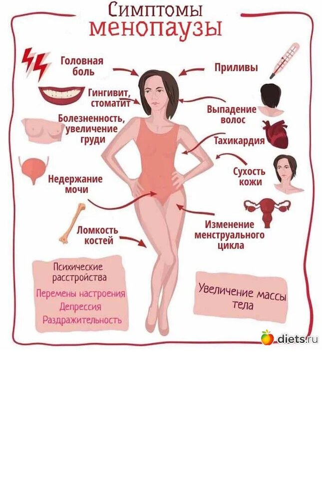 По мере уменьшения уровня половых гормонов организм женщины начинает меняться. Считается, что более низкие уровни эстрогена вызывают сбои в центре регулирования температуры тела (гипоталамусе), в результате чего возникает чувство жара. У некоторых женщин очень мало проблем с менопаузой. Для других проблемы минимальны, а у некоторых женщин есть серьёзные проблемы во время менопаузы. То, что я наблюдал в течение многих лет, так это то, что чем сильнее и здоровее женщины (благодаря хорошему образу жизни, результатом которого является сильная иммунная система), тем меньше у них проблем во время менопаузы. У вегетарианок определённо есть преимущество в способности успешно переносить менопаузу.