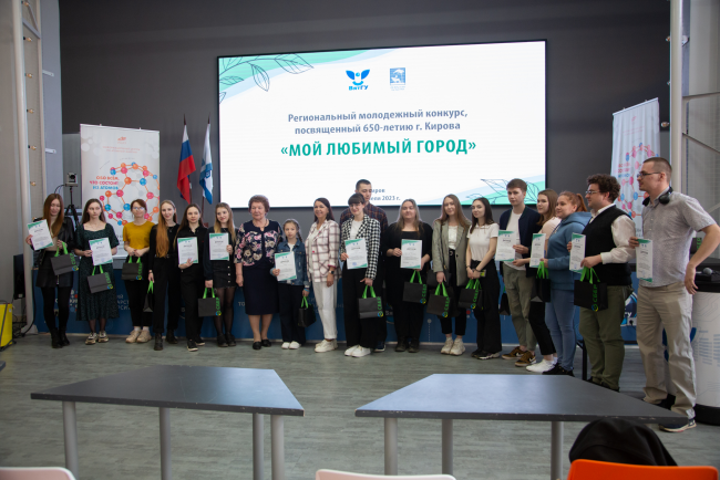 Событие прошло в рамках XVIII Всероссийской научно-практической конференции с международным участием «Экология родного края: проблемы и пути их решения» 24 апреля в «Инженериуме» ВятГУ состоялся региональный молодежный конкурс «Мой любимый город», посвященный 650-летию г. Кирова. Этот конкурс стартовал в прошлом году, а сейчас мы проводим второй этап. В следующем году, когда будет непосредственно отмечаться юбилей города Кирова, состоится третий этап конкурса, - напомнила профессор ВятГУ Тамара Ашихмина. Тамара Яковлевна отметила, что молодежный конкурс проходит в рамках XVIII Всероссийской научно-практической конференции с международным участием «Экология родного края: проблемы и пути их решения». При этом он предшествует основной части обширной программы: так организаторы подчеркивают важность презентации проектов молодых исследователей. На очный этап конкурса были отобраны 32 проекта разной тематики. Авторами наибольшего числа из них являются студенты и сотрудники Вятского государс