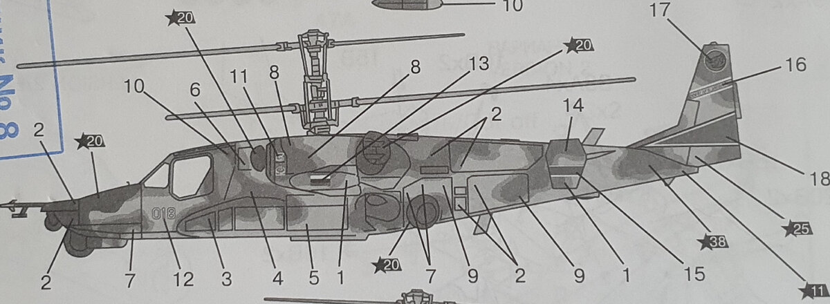 Ошибка в нумерации расположения декалей сборной модели КА-50Ш "Ночной охотник" от "ZVEZDA" 1/72.