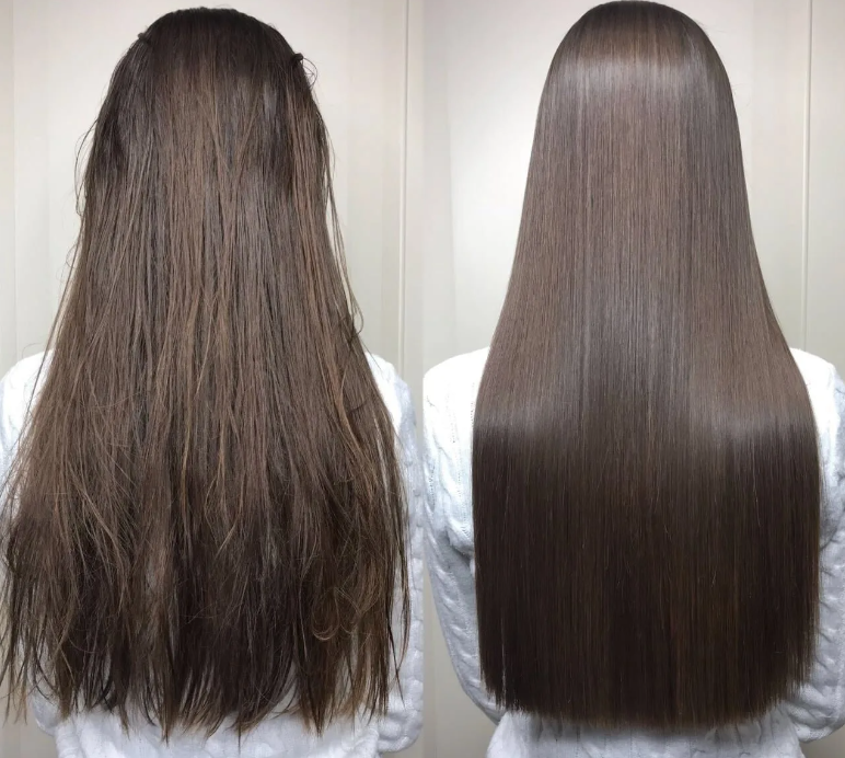 Эта инновационная методика похожа на кератиновое выпрямление, однако, кроме непосредственного выпрямления, питает волосы полезными веществами и лечебно на них влияет. Процедура проводится редко, эффект держится долго – от 6 месяцев.
