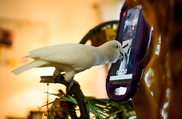 В США провели необычное исследование, научив нескольких попугаев общаться по видеосвязи. Птицы стали вести себя более социально и испытывали меньше одиночества. Ученые проанализировали более 1000 часов видеозвонков 18 домашних попугаев. В ходе эксперимента птицам давали планшет, с помощью которого те «звонили» (естественно, при помощи людей) своим пернатым друзьям. Попугаи стали вели себя более социально — чаще прихорашиваться, петь и играть. У птиц был выбор, кому позвонить, и чаще всего они звонили именно другим попугаям. Птиц сначала научили нажимать на кнопку звонка и отвечать на вызов. Затем при помощи хозяев попугаи касались фотографии другой птицы на экране планшета, чтобы позвонить ей. Попугаи в общей сложности сделали 147 осознанных звонков друг другу во время исследования. Поведение попугаев при видеозвонках отражало поведение, наблюдаемое во время взаимодействий птиц в реальной жизни, отмечают орнитологи. Пернатые демонстрировали широкий поведенческий диапазон: некоторые пел