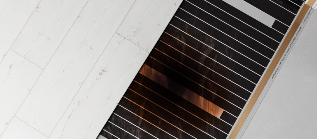 Укладывать ИК–пленку под плиткой запрещено, поскольку клей разъедает полимерную защиту карбоновых полос. Теоретически и практически монтаж этого вида системы обогрева вместе с керамическими напольными покрытиями возможен. Однако технология укладки инфракрасного теплого пола под плиткой достаточно сложная. К тому же нет ни одной разумной причины использовать в этом случае именно пленку, когда есть много других более подходящих элементов для нагрева пола — маты, секции из ИК–стержней, саморегулируемые и нагревательные кабели.