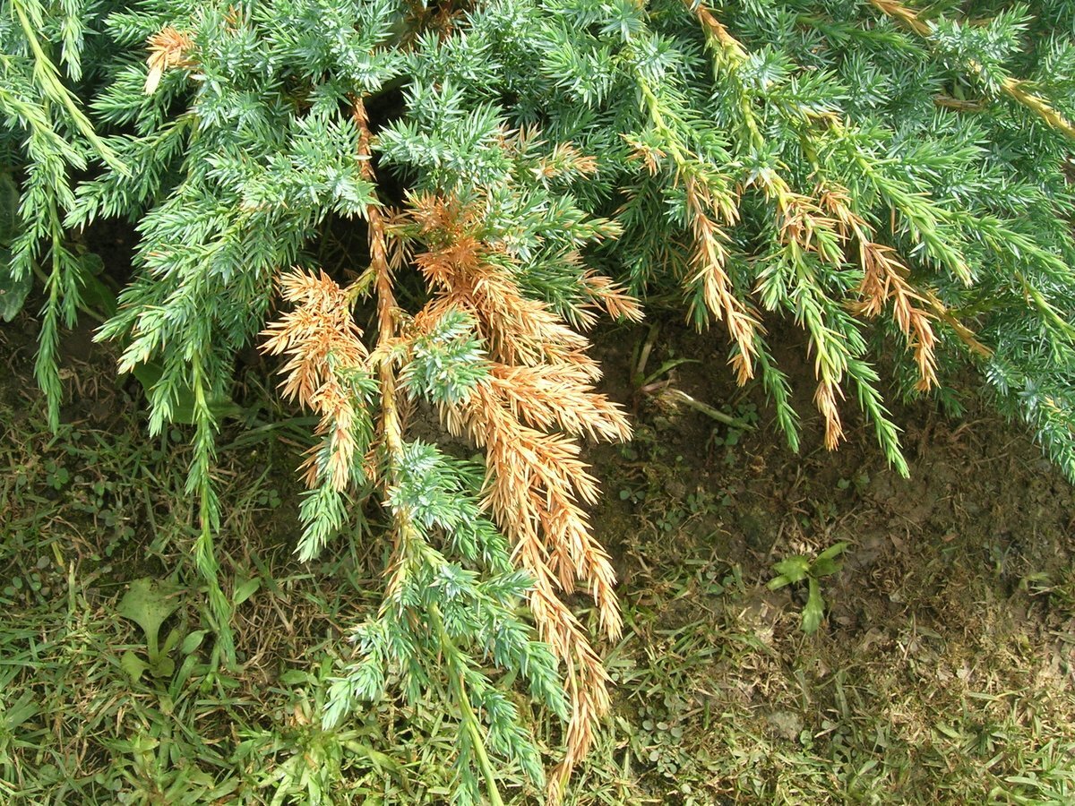 Если у вас в саду пожелтели можжевельники, то эту некрасивую проблему нужно решать. Сейчас покажу на примерах причины недуга и способы излечения посадок. Серьезных трудов прикладывать не придется, любимые растения обычно можно сохранить при правильно принятых решениях. Чаще всего хвою можжевельника портят болезни. К примеру, шютте. Это ничто иное, как грибковое заболевание. Оно видоизменяет цвет иголок, иссушая их на молекулярном уровне. Благоприятные условия для развития патогена: отсутствие профилактических обработок, тень, сырость. Первая симптоматика шютте выдает себя в начале лета. На ветках формируются округлые или эллипсовидные споры. Если их на этой стадии не остановить, то далее произойдет отмирание хвои. При обнаружении шютте все угнетенные части посадок срезают, а после культуру обрабатывают препаратами по типу «Скор», с фунгицидным свойством. Чуть менее реже появляется ржавчина не можжевельниках. Тоже заболевание грибковой группы, но с иной симптоматикой. На ветках пато