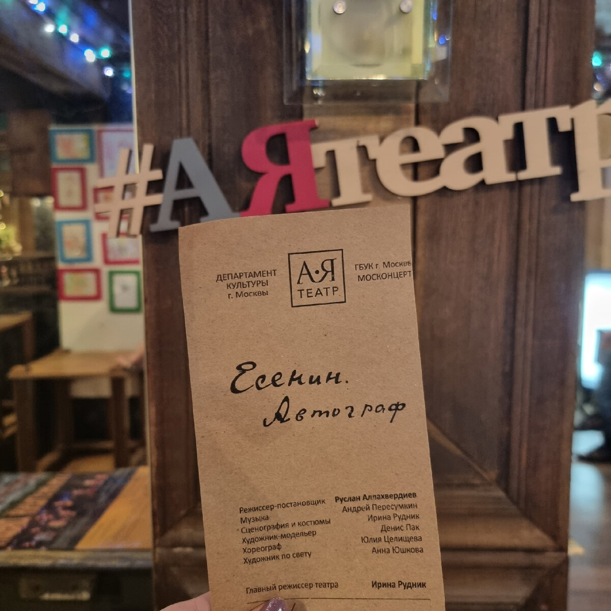 Хотя театр «А-Я» чаще называют детским, есть в нем постановки, на которые стоит обратить внимание. Музыкально-поэтический спектакль «Есенин. Автограф» будет интересен не только взрослым, но и подросткам. Он идеален для знакомства с творчеством Сергея Есенина, при этом сама постановка музыкальна, динамична. Один час спектакля будто пролетает. В основе спектакля жизнь и творчество поэта, рассказанные от первого лица. Мне очень понравилось решение режиссера-постановщика Руслана Аллахвердиева представить поэта сразу тремя актёрами, каждый из которых олицетворял разные этапы жизни. Актеры не только рассказывают со сцены историю жизни поэта, но и поют его стихи. Да, именно поют, никто ничего не декламирует, что, несомненно, является огромным плюсом. Андрей Пересумкин и Руслан Аллахвердиев выступили композиторами, переложив некоторые стихи на музыку. Очень понравились чудесные и очень красивые девушки с волшебными голосами, которые становились лошадьми, монашками и крестьянками, словно доба