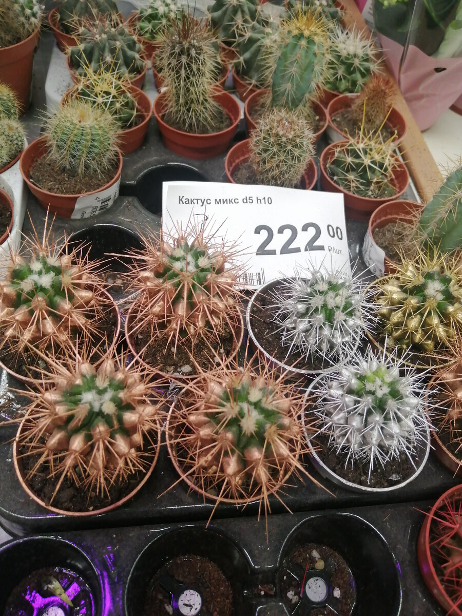 Привет всем любителям зелени! Сегодня хочу поделиться с вами обзором крупномеров из Леруа Мерлен. Пару дней назад занесло нас с дочкой в отдел с растениями, пока мужики что-то там искали в отделе с крепежом. То, что мы там нашли, вызвало во мне противоречивые эмоции. С одной стороны, все это очень красиво и внушительно. С другой - ну как эти шикарные тропические растения будут расти и развиваться в Сибири? У нас же летом кондиционеры, а зимой батареи... Надеюсь, растюхи попадут в заботливые руки и им создадут максимально комфортные условия. Что ж, пойдём смотреть, чего там экзотического привезли к нам😍 Начну с маленьких кактусов за 222р. Все бы ничего, но они окрашены. Растение покрасили в серебряный и золотой цвет... Это флористическое насилие, я считаю. Очень жаль такие растения. Себя бы покрасили, изверги🤬 Тилландсии в красивых баночках. Давно себе хочу это растение, очень интересное, растёт без грунта. Но пока ему нет достойного места и я боюсь его загубить. Но однажды обязател