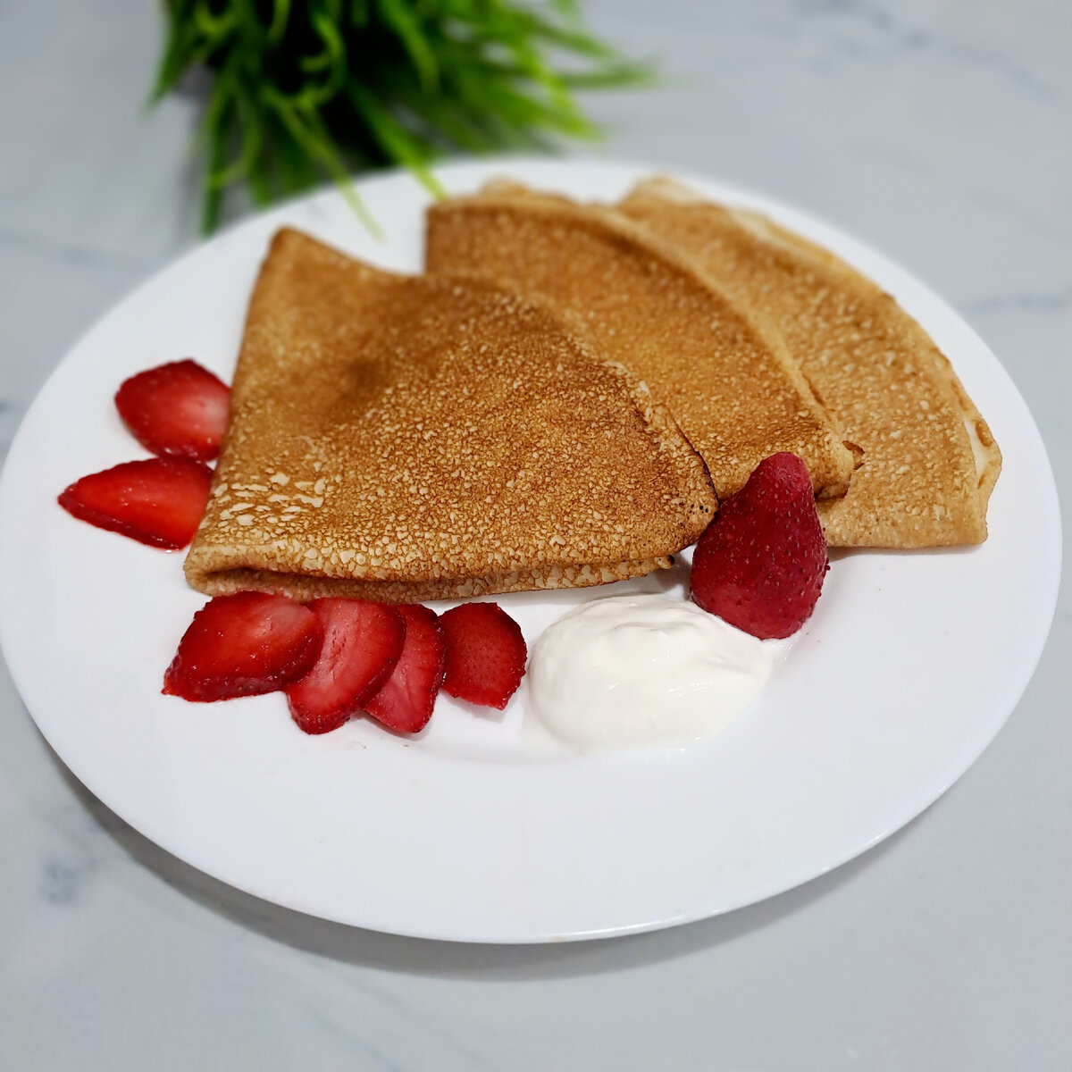 Хорошо раскалить сковороду, смазанную растительным маслом, приступаем к приготовлению. Готовые блинчики можно подавать со сметаной, ягодами и фруктами, любыми топингами или завернуть в них начинку.
