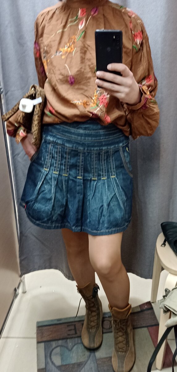 Добрый день. Сегодня не будет привычного отчета об онлайн покупках. Покажу лишь свои недавние приобретения. Очередная блузка от H&М. Приметила ее с завоза. Она мелькала на канале онлайн покупок. Я ее себе сразу "отложила", но если бы ее тогда кто-то захотел купить по полной цене, то ушла бы по назначению. Но, она долежала до пятницы - максимальная скидка, и тут трудно устоять и не купить себе. Хотя 500 руб - не так и мало. Фото с завоза (прошлого) Тут ⬆️ Я юбки дочке показываю и ботиночки маме (юбки не купили, ботики забрала) Замшевые geox за 800 маме понравились Блузка стоила 1000 Детали блузки : Состав вискоза с хлопком. Внешне ткань с лёгким блеском - похожа на шёлк Манжет углом сделан Тут ⬆️ на мне брюки Hugo Boss за 560 руб - купила в Мега хенде на прошлом завозе на скидке 60%, пару недель назад. Шерсть приемущественно в составе Примеряла с ними жилет какой-то хорошей марки, не запомнила - единственная приличная вещь с завоза из Планеты. Около 500 полная цена Во вторн