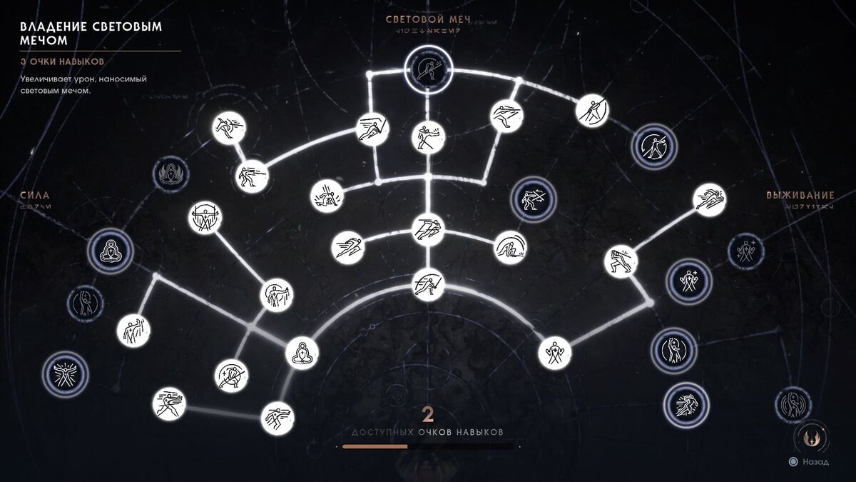 В Fallen Order навыки делятся на 3 вида: Сила, выживание и световой меч. Играете на харде – крайне внимательно подходите к прокачке, ведь любой неверный шаг дорого обойдется. Если же вы тоже предпочитаете наслаждаться историей, лазить по локациям в удовольствие и рубить штурмовиков без особого напряга, то и навыки активируйте, как заблагорассудится.