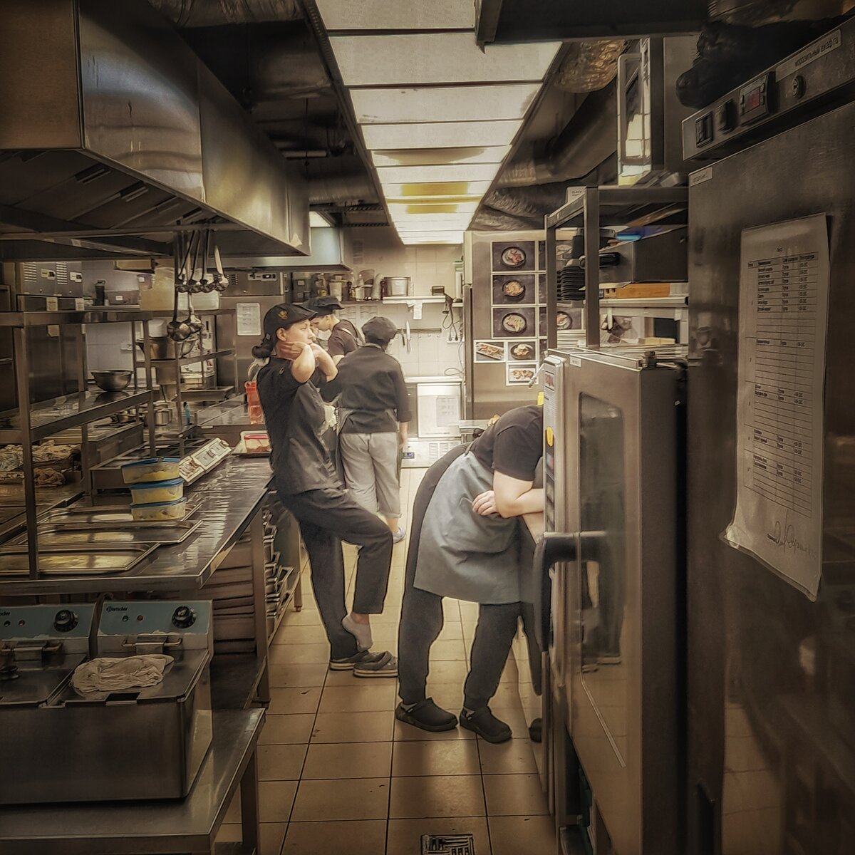 Первая работа врезается в память всегда, покрайне мере мне та кажется она словно выбита на граните въедливой памятью огромными буквами. Ты делаешь первые шаги в профессии наступаешь на первые грабли а где-то на них танцуешь . ну и первые приколы . Так сказать чистый лист . Меня с месяц уговаривали встать на раздачу. Раздача в столовой это особое место, народ идёт разношёрстный, каждый со своими тараканами в голове, шутками пиитензиями. Моя напарница жутко не любила стоять на этой позиции и всячески избегала этой весёлого время провождения ,но если вставала на раздачу то вела себя сдержанно строго гдето даже на грани фола. Однажды кто то из клиентов усомнился в правильности веса гарнира на тарелке ,на что моя подруга поставив тарелку на весы отняла от гарнира бедолаги еще пол ложки абсолютно молча. Он почесав репу продвинулся к кассе. Через человека 4 еще один трудящийся стал громко сомневаться в колличеств гарнира на тарелке. Подруга даде не успела достать весы как раздался в тишине