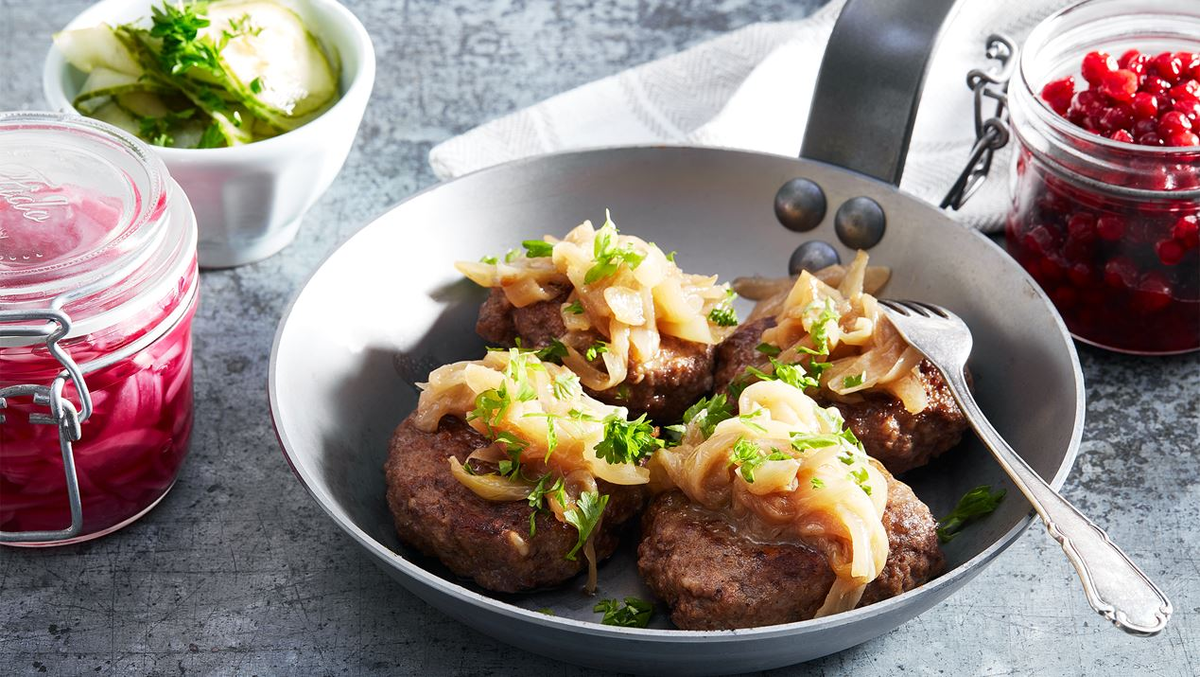 Привет, друзья! Сегодня я хочу предложить вам классический рецепт жареных стейков с ароматным карамелизированным луком. Это популярное блюдо подарит вам удовольствие от его традиционного вкуса и аромата. Дополните блюдо картофелем и разноцветными овощами, чтобы сделать его еще ярче и аппетитнее. 1. В миске смешайте панировочные сухари и сливки. Дайте им набухнуть около 10 минут. 2. Затем добавьте фарш, лук, яйцо, соль и перец. Перемешайте все до однородной массы и сформируйте гладкие котлетки. 3. Обжарьте котлетки на смеси сливочного и рапсового масла на среднем огне около 5 минут с каждой стороны. 4. Очистите и нарежьте лук на тонкие полукольца. Обжарьте его на растительном масле до золотисто-коричневого цвета и мягкой текстуры. Это поможет карамелизировать лук, делая его сладким и ароматным. Приправьте солью и перцем по вкусу. Говяжий фарш - 500 г