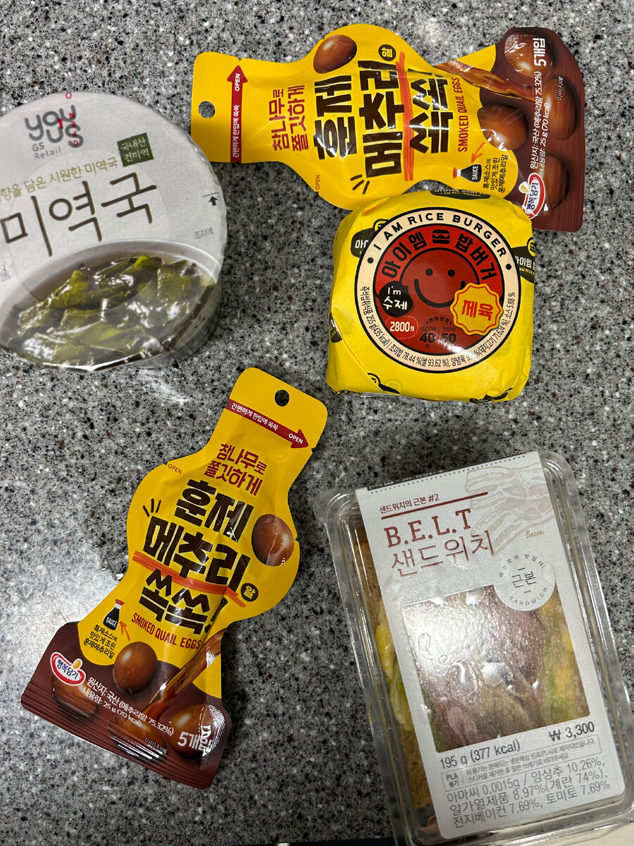Какие на вкус копченые яйца, что в рисовом бургере, где в Москве купить суп с водорослями и сэндвич. Магазины GS, 7eleven и CU, где продают товары первой необходимости, напитки, готовую еду, работают почти в каждом сеульском дворе. В большинстве магазинов есть микроволновки, термосы с горячей водой, столы, поэтому поесть можно сразу там. Сегодня я зашла в GS за водой, а дальше все как в тумане. Моя итоговая добыча: 1) 2 упаковки копченых перепелиных яиц за 120 рублей по акции. Вкуса копчености почти нет, во «Вкусвилле» лучше и дешевле. Оценка: 2 из 5. 2) Суп с водорослями в стакане за 73 рубля. Мой фаворит из еды быстрого приготовления: открыл упаковку, залил кипятком, перемешал, съел. Кроме водорослей и усилителей вкуса ничего нет, но почему-то это очень хорошо. Во «Вкусвилле» тоже продают подобные супы. Оценка: 6 из 5. 3) Сэндвич с ветчиной, сыром и салатом за 183 рубля. Если погреть в духовке, то идеально. Оценка: 4 из 5. 4) Рисовый бургер. Сущность следующая: спрессованный в форме