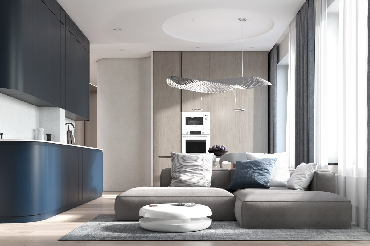 Описанный так: “Мой концептуальный способ заморозить момент, который, казалось, был создан воздухом, прокатывающимся по тонкому листу, достигая очень естественного потока и ритма в легкой скульптурной коже. В конечном счете кажется, что он подвешен в антигравитации на воздушной подушке….как космос в сложных формах и геометриях, которые, кажется, не поддаются объяснению и создают ощущение бесконечности”. Эту форму повторяют белые изящные стулья, подчеркивая легкость и воздушность интерьера. А вам нравятся акценты в интерьере? На что больше обращаете внимание в дизайне?