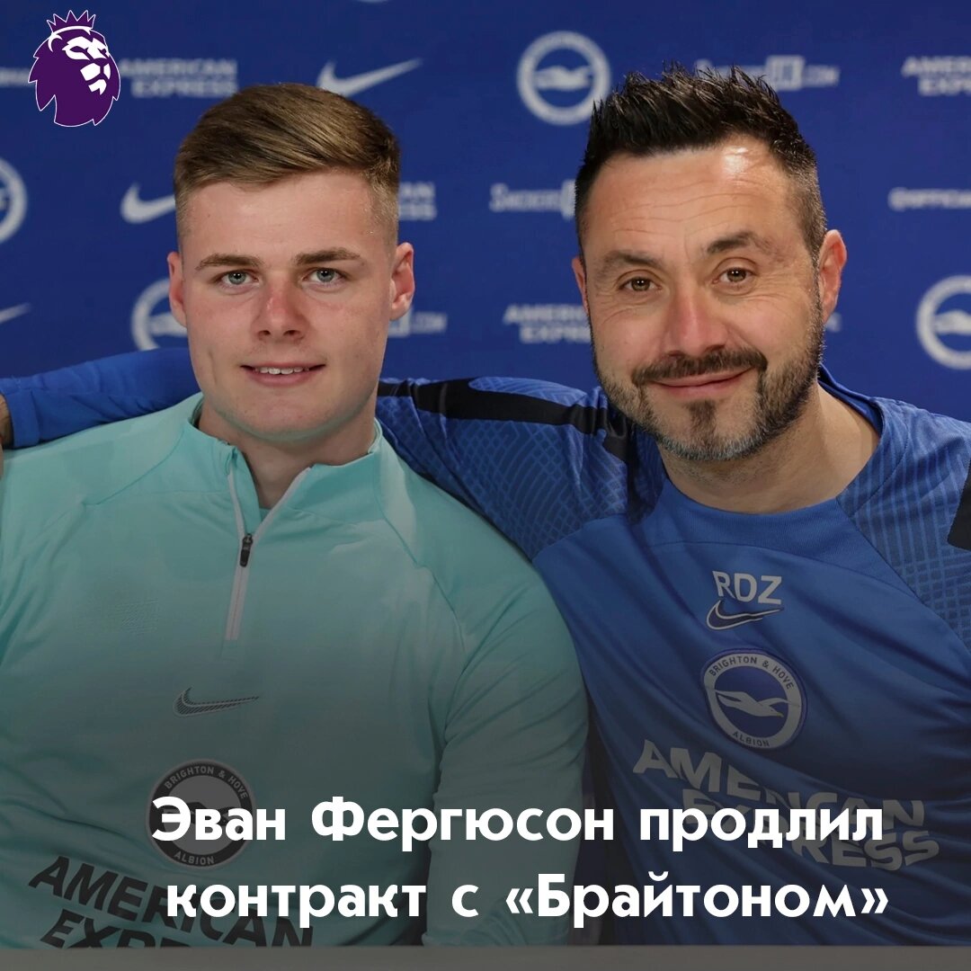 18-летний нападающий Эван Фергюсон продлил контракт с «Брайтоном» до окончания сезона 2027/28! В этом сезоне он забил девять голов во всех соревнованиях, в том числе четыре в Премьер-Лиге. Он также забил свой первый гол за сборную Ирландии в прошлом месяце в товарищеском матче против Латвии. Главный тренер Роберто Де Дзерби: «Продление контракта c Эваном - отличная новость. Он тренируется и играет как взрослый футболист с многолетним опытом и стал важным членом команды. Наша цель - помочь ему стать одним из сильнейших нападающих в Европе». Эван перешел в «Брайтон» из ирландского клуба «Богемианс» в январе 2021 года и быстро зарекомендовал себя в академии и на уровне до 21 года, после чего стал пятым самым молодым дебютантом в основном составе в том же году против «Кардифф Сити» в Кубке Лиги. Свой первый гол в Премьер-Лиге он забил в декабре против «Арсенала».