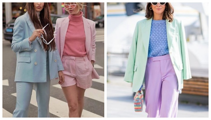 Одним из трендов весны 2023 года стали вещи пастельных оттенков. Прямо сейчас вы можете насладиться вдохновляющими аутфитами в пастельных тонах, в которые просто невозможно не влюбиться. Оставайтесь с нами, дальше будет много контента, который поможет разнообразить скучные повседневные образы. В первых двух образах, брючные костюмы классического фасона в пастельной цветовой гамме гуру моды обыграли базовыми однотонными футболкам, а также светлыми громоздкими кроссовками. Асимметричный топ привлекательного молочно-зеленого цвета гармонично сочетается с трикотажным кардиганам небесного цвета в контрастный цветочный принт. Завершающим элементом этого аутфита стали универсальные джинсы из светло-синего денима. В этом весеннем аутфите гармонично смотрится лиловый, салатовый, а также пыльно-розовый цвет. Монохромный женственный look получилось создать благодаря сочетанию нежно-сиреневой блузы, миди юбки плиссе, остроносых туфель с акцентной брошью, а также кожаного клатча с контрастными вста