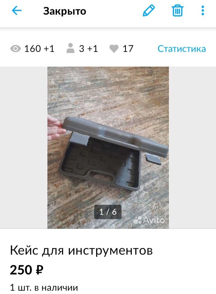 Сегодня в обед муж продал кейс, чисто его вещь. Вчера только удивлялась, что срок истекает, и никто ещё не приобрёл. Всего месяц провисел, забрали, и славно!