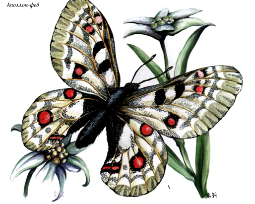 Бог Аполлон. Кто из нас не восхищался высоким красивым юношей, носящим лавровый венок на голове и держащим лиру (или лук) в руках. Латона, возлюбленная Зевса, должна была родить сына, но Гера, ревнивая жена великого Громовержца, запретила Латоне рожать ребёнка на Земле. Зевс не оставил свою возлюбленную и нашел в Эгейском море остров Астерию, гонимый ветрами, скитающийся по морю. Этот остров стал пристанищем для возлюбленной Зевса. Крик младенца оповестил о рождения нового бога, а остров Астерия прекратил свои скитания по морю и навсегда остановился. Поле рождения Аполлона он стал известным как Делос (незыблемое диво всего света). Так дикий и пустынный остров превратился в сказочный край, здесь нашел приют Аполлон Феб («солнечный»). Небо и земля озарилось чудным божественным светом. Всё вокруг зацвело.Природа торжествовала и приветствовала появление бога. На острове воздвигли храм Аполлона, а раз в четыре года стали проводить спортивные состязания, посвященные Аполлону. Бабочка Аполло