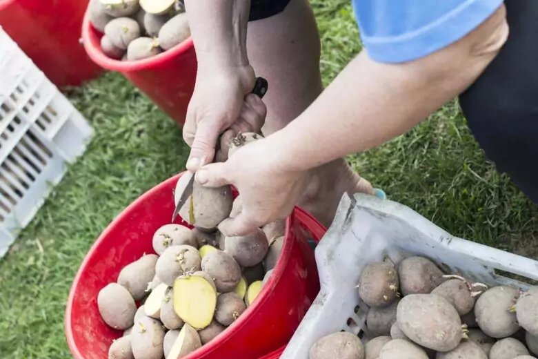 Перед разрезанием клубней проверьте всю партию, есть ли среди них подпорченные. Уберите их, чтобы не заразили остальную картошку.