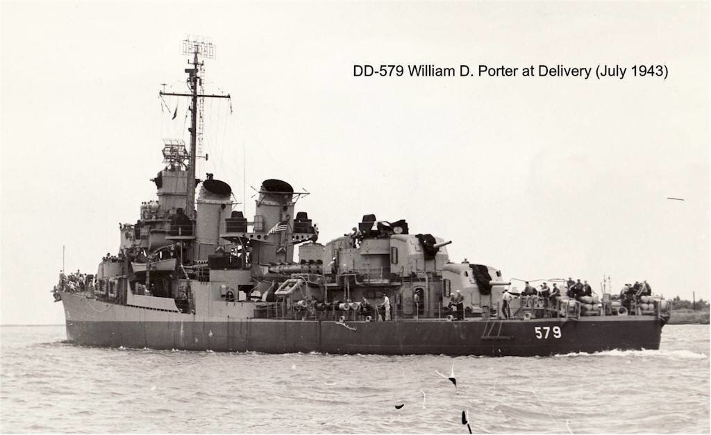 Эсминец Уильям Д. Портер, 1943 г.р., ничем особо не выделялся среди своих собратьев, получил кличку «Вилли Ди», и отправился сопровождать линкор «Айова», на борту которого Рузвельт спешил на Тегеранскую конференцию, обкашливать вопросики по переустройству мира. Отходя от причала, наш бедолага-эсминец врезался в своего собрата, отчего последнему неслабо прорезало борт. Ладно, делов на пару минут, подрихтовали, подкрасили, плюнули, подтерли, поплыли дальше. Соединение: «Айова» плюс три эсминца вышло в Атлантику. Чтобы злобный подводный Ганс не спалил такую сладкую мишень, соблюдалось строгое радиомолчание. Плыли в тишине и спокойствии, пока, внезапно, не прогремел взрыв. Воякам послышалось хихиканье злобного подводного Ганса, и резко начались противолодочные маневры, пока «Вилли