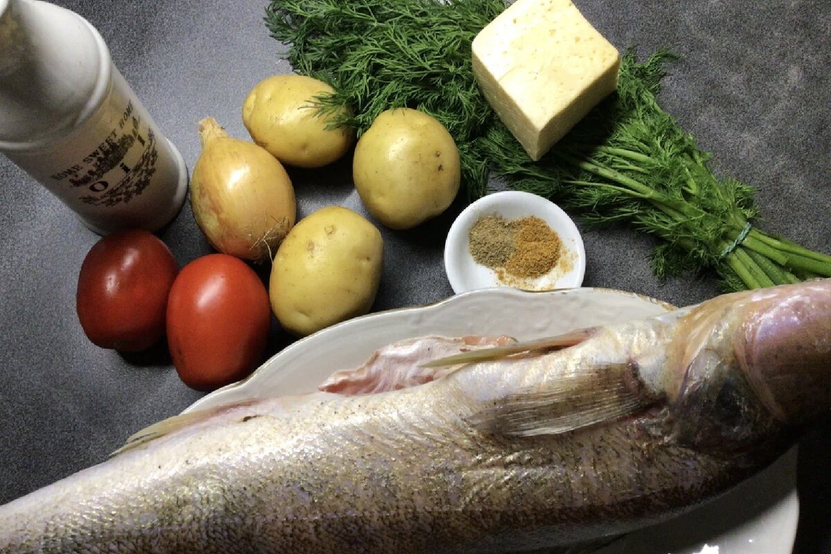 Здравствуйте, дорогие подписчики и гости моего канала. Сегодня на ужин рыба с овощами в духовке. Так она получается намного сочнее, вкуснее и полезнее. Ингредиентов надо минимум, рыба у меня судак. Эта рыба хороша тем, что нет мелких костей. А вообще можно приготовить любую рыбу. Мы морскую рыбу покупаем очень редко, так как она совсем безвкусная. Рыбу надо хорошо помыть, нарезать на порционные кусочки. Затем посолить и приправить специями по вкусу. Пока рыба просаливается, приготовим овощи. Все овощи нарезаем колечками. В глубокую сковородку выкладываем картофель и лук. Затем раскладываем рыбу. Сверху немного рыбу сбрызнуть лимоном. Далее раскладываем ещё слой лука и заливаем сметаной, я ещё добавила немного специй. Сверху раскладываем томаты. Всё накрываем фольгой и ставим в духовку на 30 минут. Через 30 минут. Достаём из духовки и посыпаем сыром. Ещё ставим в духовку на 10 минут, чтобы сыр расплавился. Далее посыпаем зеленью, и подаём на стол. Приятного аппетита! Ставьт