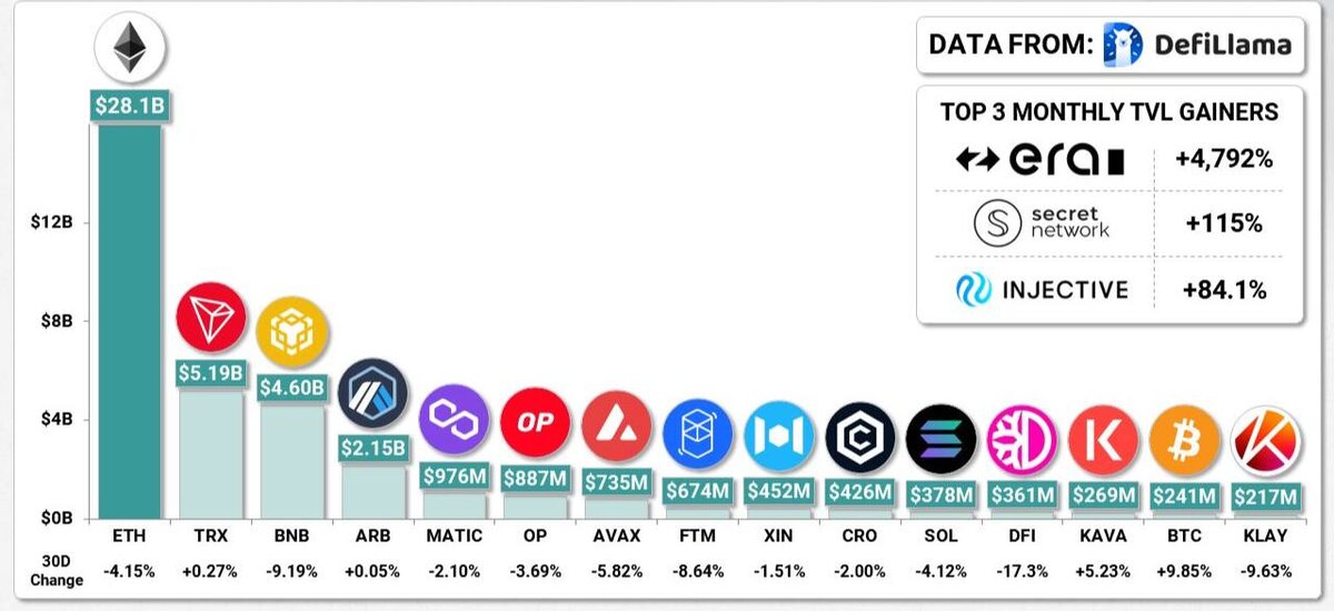 ✅ Основные новости на 26 апреля: 🔺Курс доллара: 81,6 руб. 🔺Курс биткоина: 28.300$ 🔺Рынок на подъеме: BTC за ночь прибавил +3% и потащил альты вверх на +4..6%. Лучше всех отрастают INJ и XPD на +14% за день. 🔺Основная причина роста: банкротство крупного банка США - First Reuplic: биткоин на фоне, снова выступает как защитный актив. Также вчера вышли неплохие фин.отчеты от Гугл и Майкрософт - что в моменте, толкало индекс S&P вверх. 🔺китайский Conflux также отрастет на +9%, на фоне заявлений Шанхая о поддержке технологии Metaverse и использование смарт-контрактов Эфира. Эксперты рекомендуют присмотреться к монете при цене ниже 0,25$. 🔺капитализация USDT с начала года выросла на +15 млрд.$. Но несмотря на популярность, эксперты советуют держать бОльшую часть стейблов в USDC (ERC-20) как более безопасный актив. 🔺ТОП-15 блокчейнов по объему TVL (оборот средств в defi-сервисах)👇ЕТН - явный лидер.