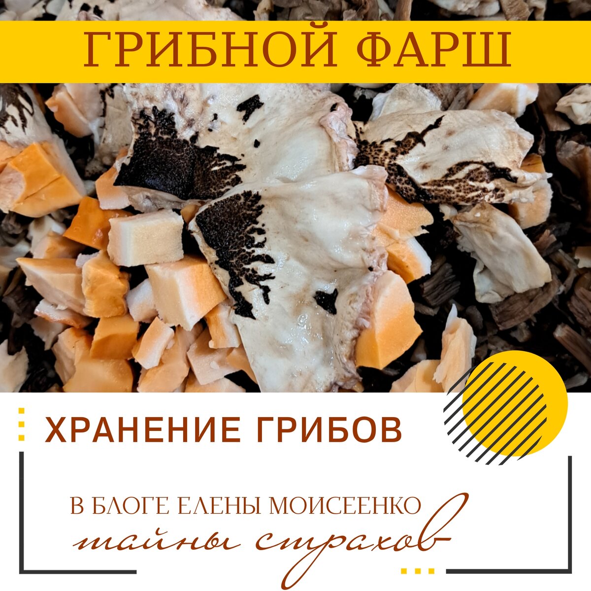 Добрый день. Сегодня я расскажу о том, как приготовить исохранить грибной фарш. Это очень удобный полуфабрикат, который вы можете изготовить из разных грибов, а затем использовать его для приготовления котлет, тефтелек или фаршировки разных видов овощей. Для приготовления такого фарша используются грибы в отварном виде. Для своего фарша я выбрала: ТСЖ, опята осенние, сморчки, зонтики. Если вы делаете фарш с добавлением ТСЖ, то пропорции грибов и сала 2:3, так как этот гриб любит жир, он его очень сильно впитывает, но для всех остальных грибов подойдут пропорции 1:3 ИНГРЕДИЕНТЫ: Грибы отварные 1,5 кг Сало 1кг ПРИГОТОВЛЕНИЕ: Отварные грибы слегка отжать. Сало порезать кусочками. Все это перекрутить на мясорубке и хорошенько перемешать. При приготовлении такого фарша мы не добавляем соль и специи. Готовый фарш фасуем по пакетам и храним в морозилке. Готово!