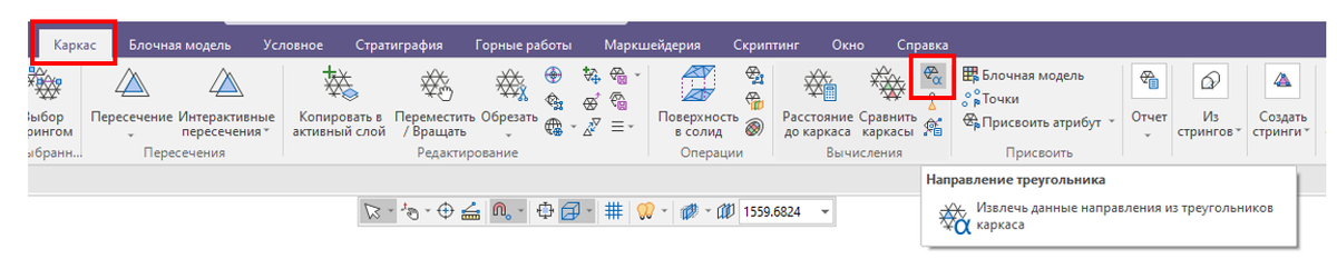 Как отобразить стрелки направление градиентов треугольников каркаса или линии стока воды для поверхности? План действий: 1. Перейдите на вкладку Каркас > Вычисления > Направление треугольника 2. На вводе укажите набор или один каркас дневной поверхности (предварительно можно преобразовать грид в каркас через Сетка/ЦМП > Преобразование сеток > Сетку в ЦМП) На выходе получается таблица с координатами центроида треугольников, а также углом и направлением: 3. Можно отобразить точки центроидов через слой Точки, но предварительно советуем прибавить к высотной отметке точки 1–2 метра, для того чтобы визуализация стрелок была более читабельной. Добавить дополнительный поле в файл можно через редактор файла - в группе инструментов Править поля выберите инструмент Вычислить. К полю высотной отметки прибавить 1, результат записать в новое поле. Переходим в Формы Визекса > слой Точки, в диалогов окне на вводе указываем созданный файл, в поле Z – новое поле RL_+1. На вкладке Точки выберите символ