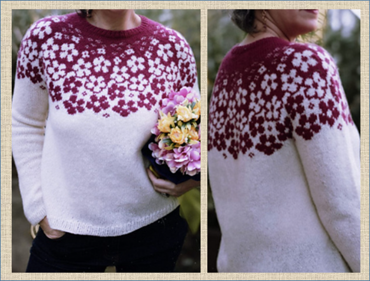 Весенние цветы на круглой кокетке яркого джемпера - отрисовала жаккардовую схему узора по мотивам готового изделия - свободный доступ