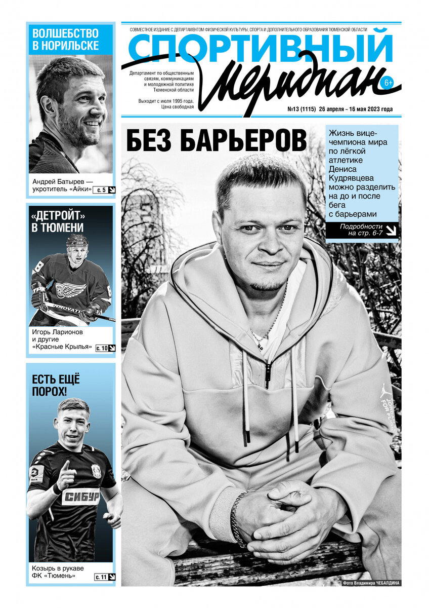 «Возрастной лимит — взять и отменить!»" - так называется материал о минувшем сезоне в чемпионате ВХЛ. Газета публикует беседу с титулованным легкоатлетом Денисом Кудрявцевым. Он брал награды на самых престижных международных стартах.