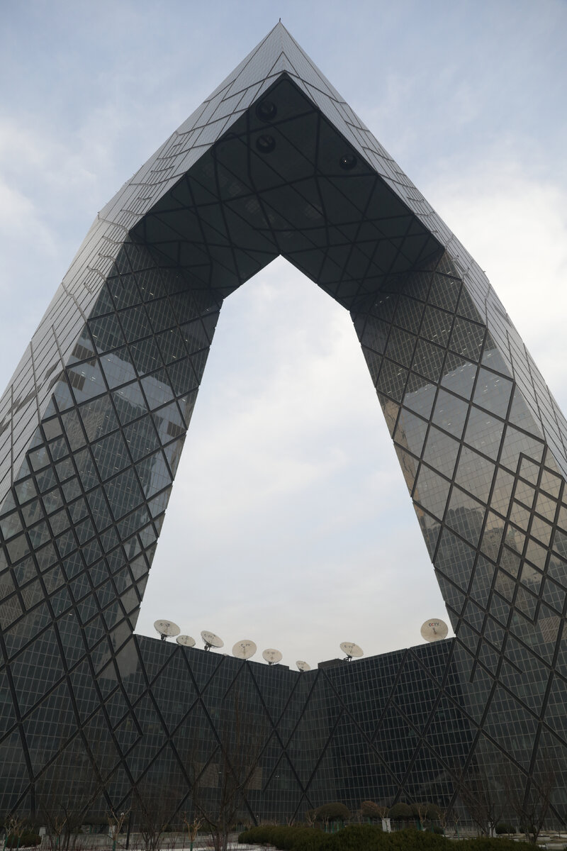 "Штаны" - так в народе называют одно из самых причудливых зданий в мире. В эти "штаны" экскурсий не водят - объект режимный. Здание CCTV - центрального телевидения КНР. Это новая штаб-квартира. Есть ещё старое здание. Оно всё ещё функционирует и часть персонала работает там. А этот объект ввели в эксплуатацию и плотно заселили сотрудниками лет 7-8 назад. Мне довелось бывать там по работе, поэтому была возможность всё посмотреть. Вообще, этого здания могло бы и не быть. Его и жилой комплекс для сотрудников рядом уже почти закончили. Но внезапный пожар, как это обычно и бывает, поставил под вопрос существование этого сооружения. Там мутная история. Вроде как в новогоднюю ночь то ли на крышу, то ли в вентиляцию жилого корпуса попал фейерверк, то ли проводка, то ли ещё что... Гостиница выгорела. Её хотели сносить. Но так как у гостиницы и телецентра общее основание, то был риск, что из-за смещения центра масс телецентр начнет проседать или что-то такое. В итоге, решили не сносить, а вроде