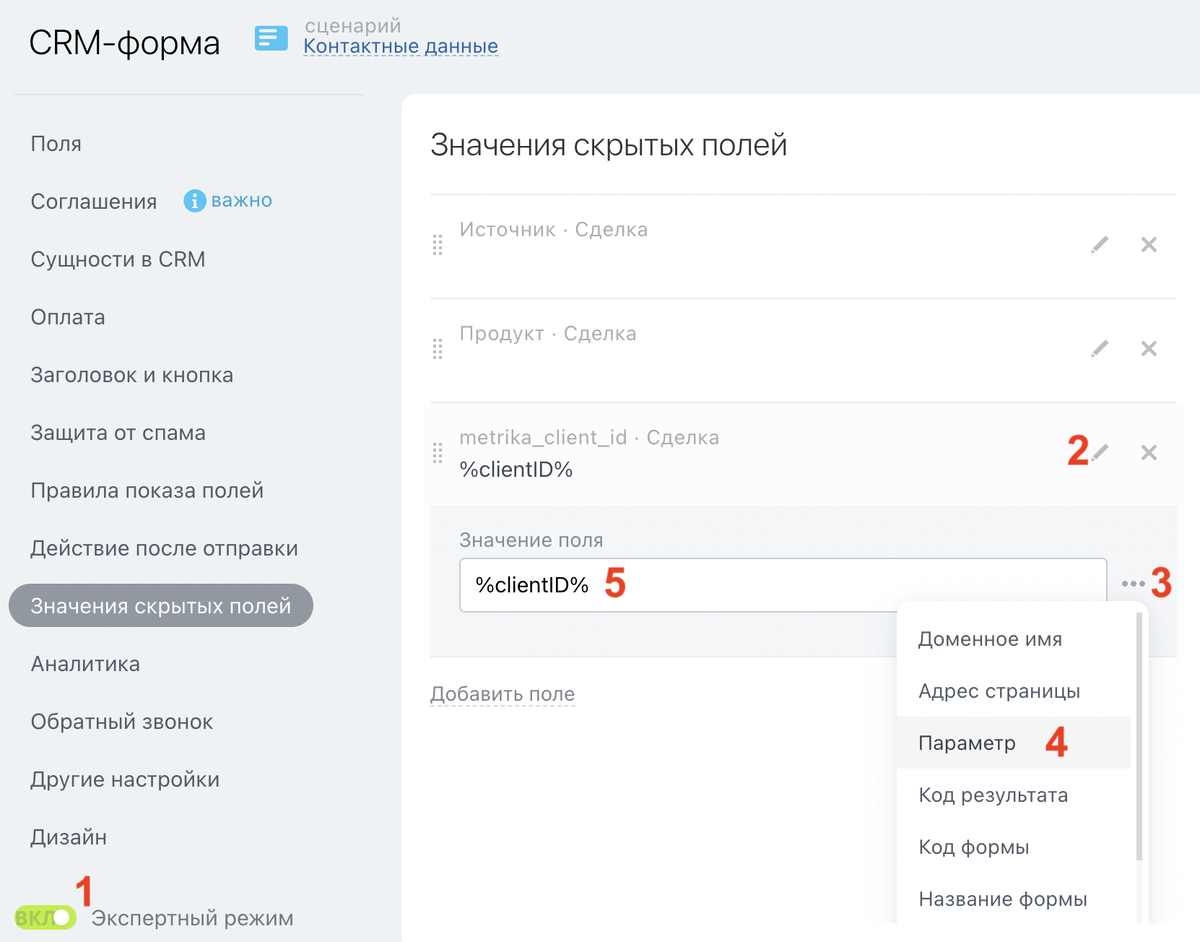 Далее создаем CRM-форму, которая будет размещаться на нашем сайте, собирать ClientID и