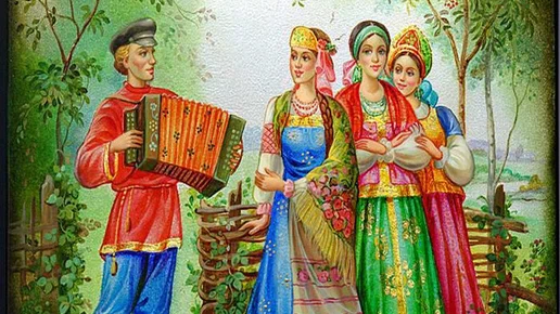 Стайка подружек Василисы — девушки примерно одного с ней возраста, все в разных расшитых сарафанах, в нарядных кокошниках с лентами — щебеча, словно птички, направилась к сельской площади. Здесь уже собралось много народу: парни и девушки со всего села. Нарядные, каждый по-своему красивый — все они веселились, разговаривали и ждали, когда начнут водить хороводы.