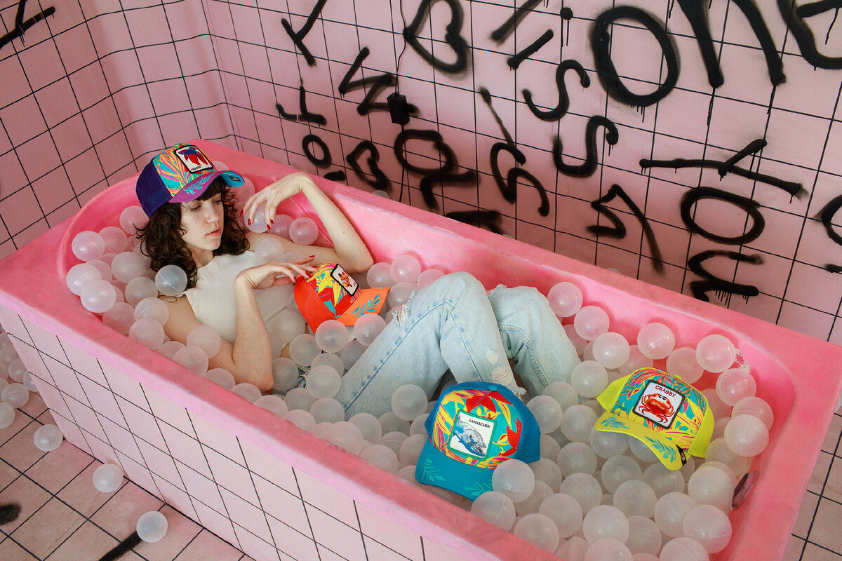 Атмосферой летнего досуга пропитана каждая деталь бейсболок: разноцветные передние панели, ткань, напоминающая купальник и морские жители на патчах. Встречайте: рыба-клоун, краб, барракуда и бойцовая рыбка.