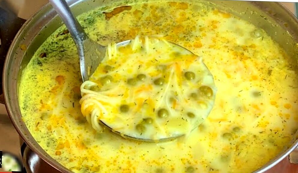 Привет друзья и гости канала! С вами Мила. Сегодня берём одну банку консервированного зелёного горошка, два плавленых сырка и готовим очень вкусный и простой в приготовлении сливочный суп! 30 минут - и сытный обед или ужин готов! Очень простой и быстрый рецепт вкусного блюда на скорую руку из самых доступных и недорогих продуктов, которые можно купить в любом магазине. Сама готовлю такой супчик часто, съедаем быстро🙂 Ингредиенты: 1️⃣Консервированный горошек- 1 банка. 2️⃣Плавленый сыр- 2 шт. 3️⃣Яичная лапша- 150 гр. 4️⃣Картофель- 3 шт. 5️⃣Морковь- 1 шт. 6️⃣Лук репчатый- 1 шт. 7️⃣Укроп сушеный- 1 ч.л. 8️⃣Чеснок сушеный- 1 ч.л. 9️⃣Чёрный перец, соль по вкусу. 🔟Масло растительное- 1- 2 ст.л. и вода 3 литра. Пошаговое приготовление 👇 Репчатый лук и морковь моём и очищаем от кожуры. Лук нарезаем мелкими кубиками, морковь натираем на средней тёрке. Ставим кастрюлю на небольшой огонь, добавляем 2-3 ст. ложки растительного масла. Выкладываем в разогретую кастрюлю лук и морковь ?