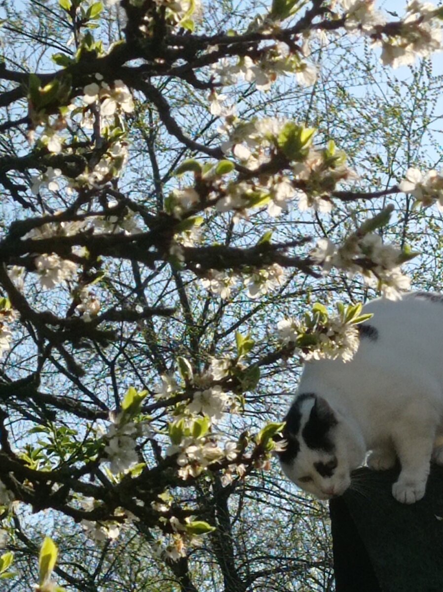 Весна, Веснушка и "Радость моя"... Слива в цвету... Кошка встречает