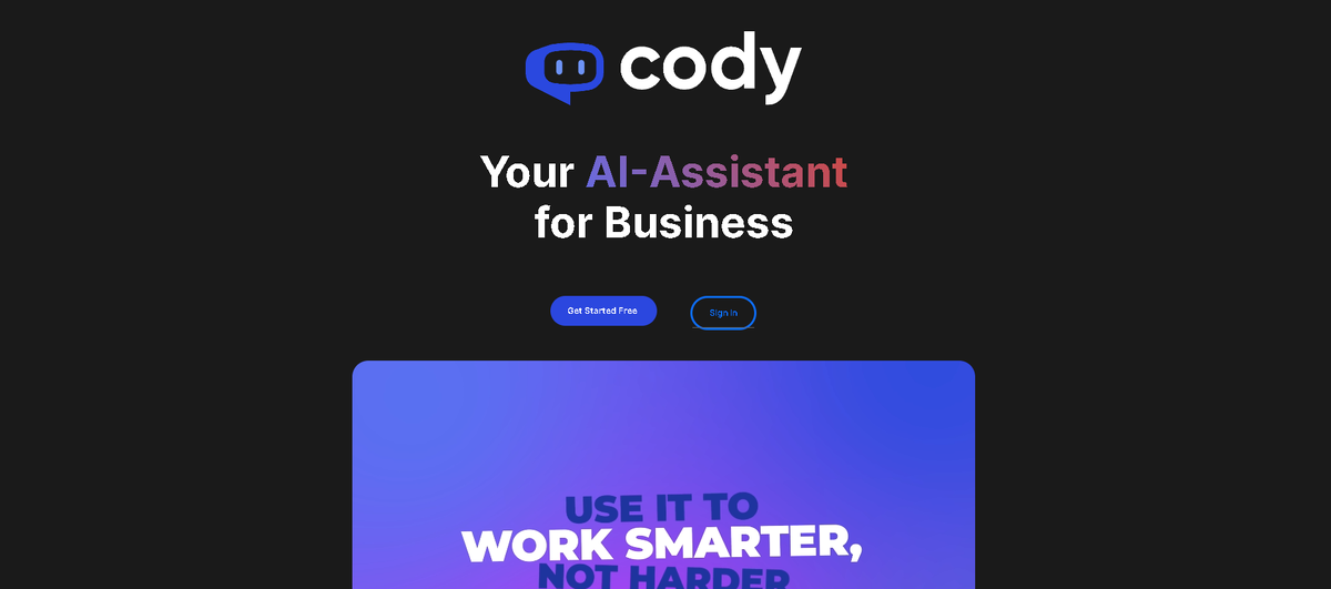 Cody — это интеллектуальный помощник на основе искусственного интеллекта, такой как ChatGPT, но с дополнительным преимуществом, заключающимся в возможности обучать его работе с вашим бизнесом, вашей командой, вашими процессами и вашими клиентами с помощью вашей собственной базы знаний. Используйте Cody для поддержки своей команды, ответов на вопросы, помощи в творческой работе, устранения неполадок и мозгового штурма. Cody — виртуальный сотрудник с искусственным интеллектом, предназначенный для решения различных бизнес-задач. К основным особенностям и преимуществам относятся: Варианты использования Cody идеально подходят для различных потребностей бизнеса В целом, Cody предлагает настраиваемое и эффективное решение для компаний, позволяющее улучшить их процессы с помощью искусственного интеллекта. CODY - https://www.meetcody.ai