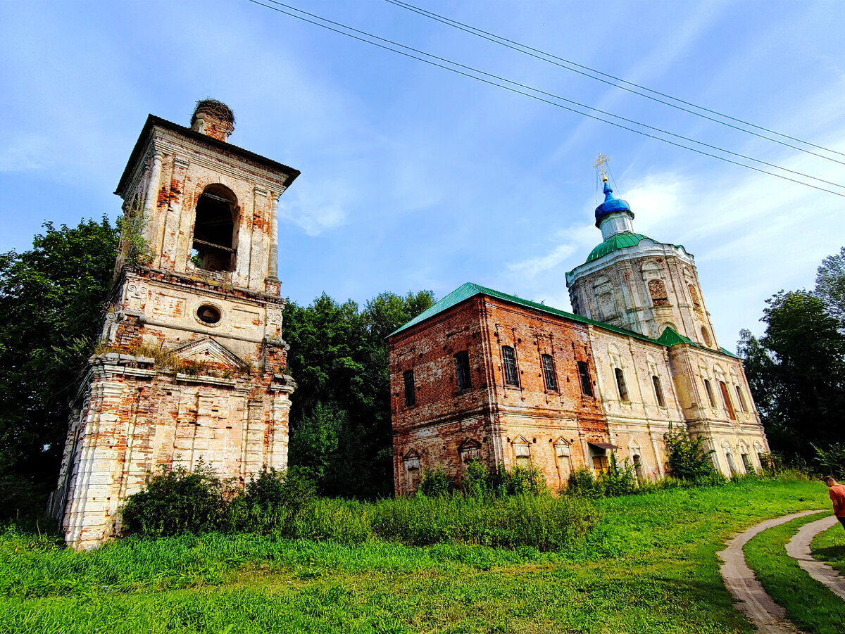 Такое я вижу впервые: двухэтажная церковь с отдельно стоящей колокольней и руины дворянской усадьбы