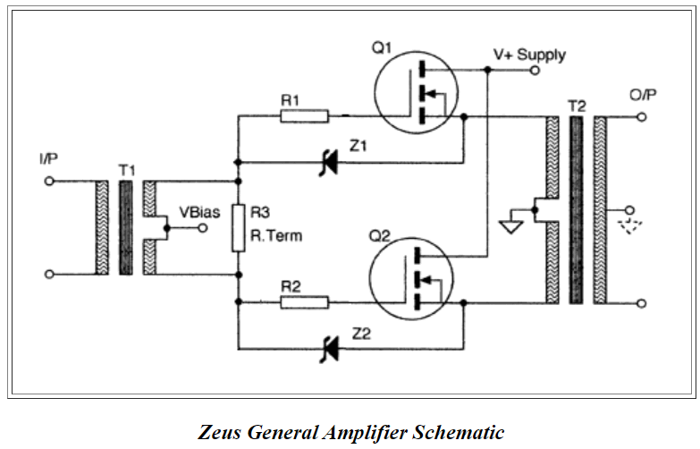 Прототипом рассматриваемого далее усилителя послужил усилитель Zeus 75 Power Amplifier , о котором я упомянул в конце предыдущей своей статьи. Схема усилителя Zeus и его коэффициент гармоник представлен ниже.