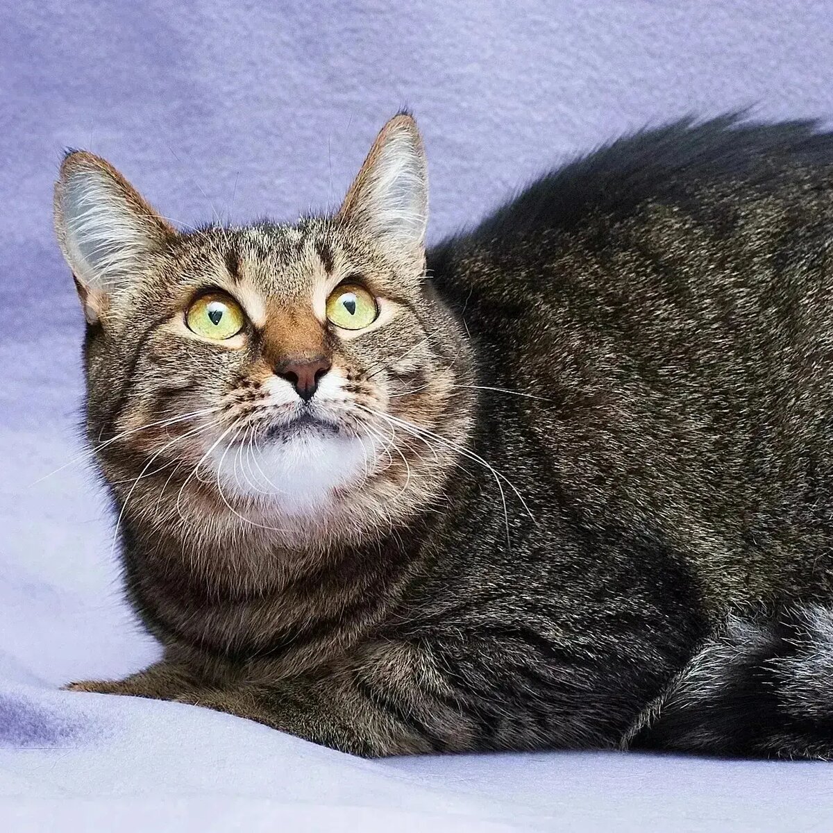 Кошечка, в которую невозможно не влюбиться, мимо которой нельзя пройти, не засмотревшись в ее невероятно глубокие, умные глазки.. Она просто какая-то неземная Чунечка - типичный пример того, как улица может быть жестока с котами. Приехала Чуня тощая, грязная, трясущаяся от любого шороха. Ребёнок очень боялся людей, рук, резких движений и звуков. Таких кошек многие кураторы после стерилизации сразу выпускают на улицу, чтобы не мучиться с дичками, но Чуню не выпустили. И спустя несколько месяцев.. это абсолютно другая кошка Начнем с того, что Чуня действительно обладает интеллектом. Она не идет к людям, которых она не знает, с чужаками всегда настороже. Но стоит начать делать ей комплименты и рассказывать, какая она красивая кошечка.. Полосатенькое чудо уже бежит к тебе ластиться, с поднятым хвостом и громко мурча. А еще она на ручках любит сидеть. И в игры играть. А вот что ей не нравится, так это то, когда гладящий человек от нее уходит. Чуня тогда бежит к дверце клетки, виснет на не