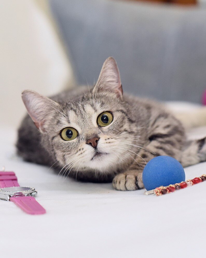 Друзья! Прочитайте до конца, поставьте лайк, оставьте комментарий - так вы поможете нам развиваться и больше помогать усатым друзьям! Софико темпераментная штучка. Ооочень темпераментная, любвеобильная и общительная полосатая особа. Кошка – мечта для тех, кто любит погорячее. Вам не удастся увильнуть от своих основных обязанностей никоим образом - гладить её не отвлекаясь ни на что минимум часа четыре в день. При этом желательно не молчать, а поддерживать с ней беседу и смотреть только на неё. Ведь она — это лучшее, что у Вас есть! Софико ревнивая дамочка и мечтает быть единственным сокровищем в Вашем доме. К маленьким детям по этой же причине её лучше не брать. Софико два года. Она здорова, стерилизована, привита, чипирована. Лоток на отлично. Территориально Москва, Крылатское. Москва, МО