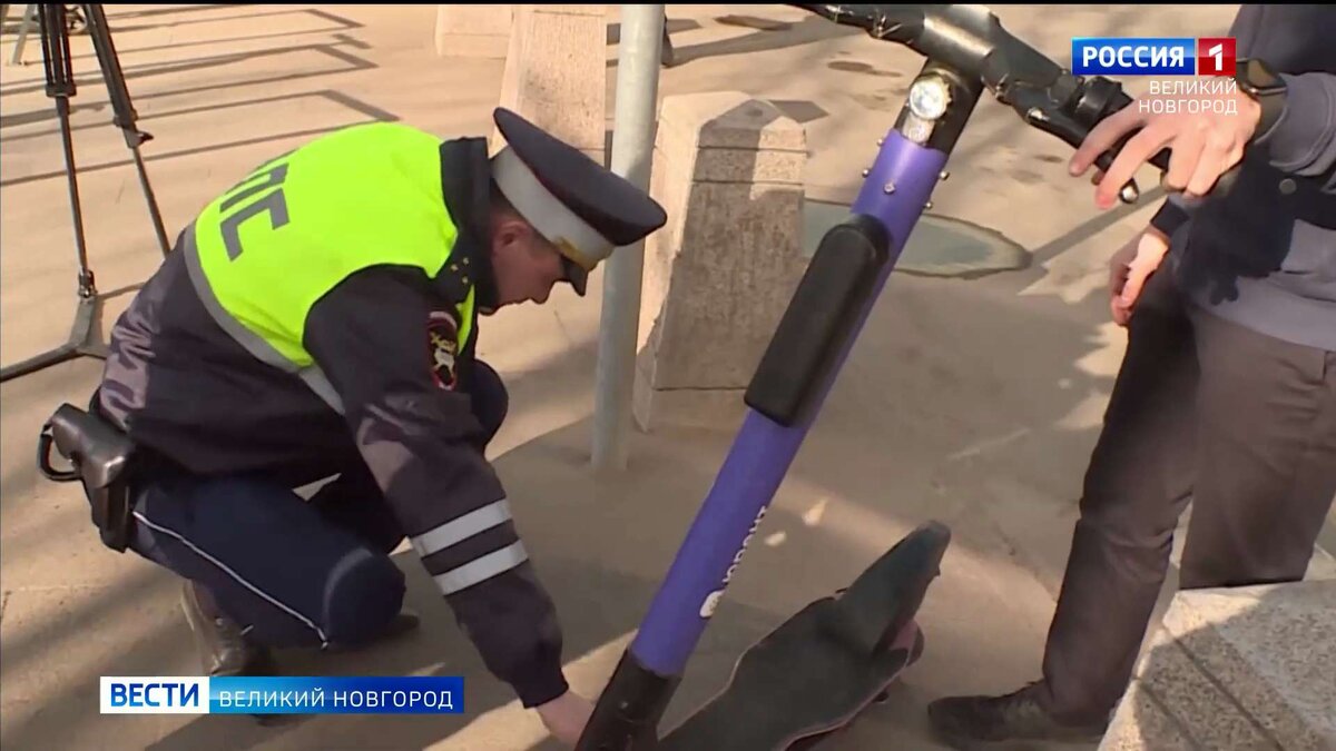 Новгородские инспекторы ГИБДД проверяют соблюдение правил дорожного движения водителями электросамокатов