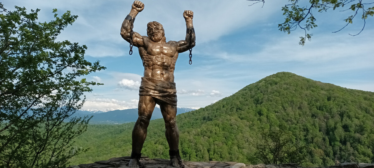 Эта легенда была увековечена в камне в 1998 году, ‒ на вершине скалы над обрывом омский скульптор Александр Капралов установил памятник бесстрашному Прометею, который сейчас стал одним из самых фотографируемых объектов в окрестностях Сочи.